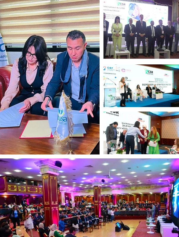 La conférence de presse se tient sous la présidence de Madame Manel Arfa, fondatrice du CSR Power Forum, consultante internationale en RSE et ESG, en présence de RUSTA et URCCI.